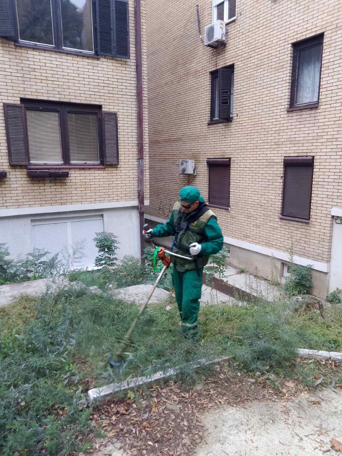 Orezivanje žive ograde 16.oktobar zamena limenih uložaka u đubrijerama Petrarkina,farbanje klupa park Ćirilo i Metodije utovar Samjuela Beketa, Koste Nađa