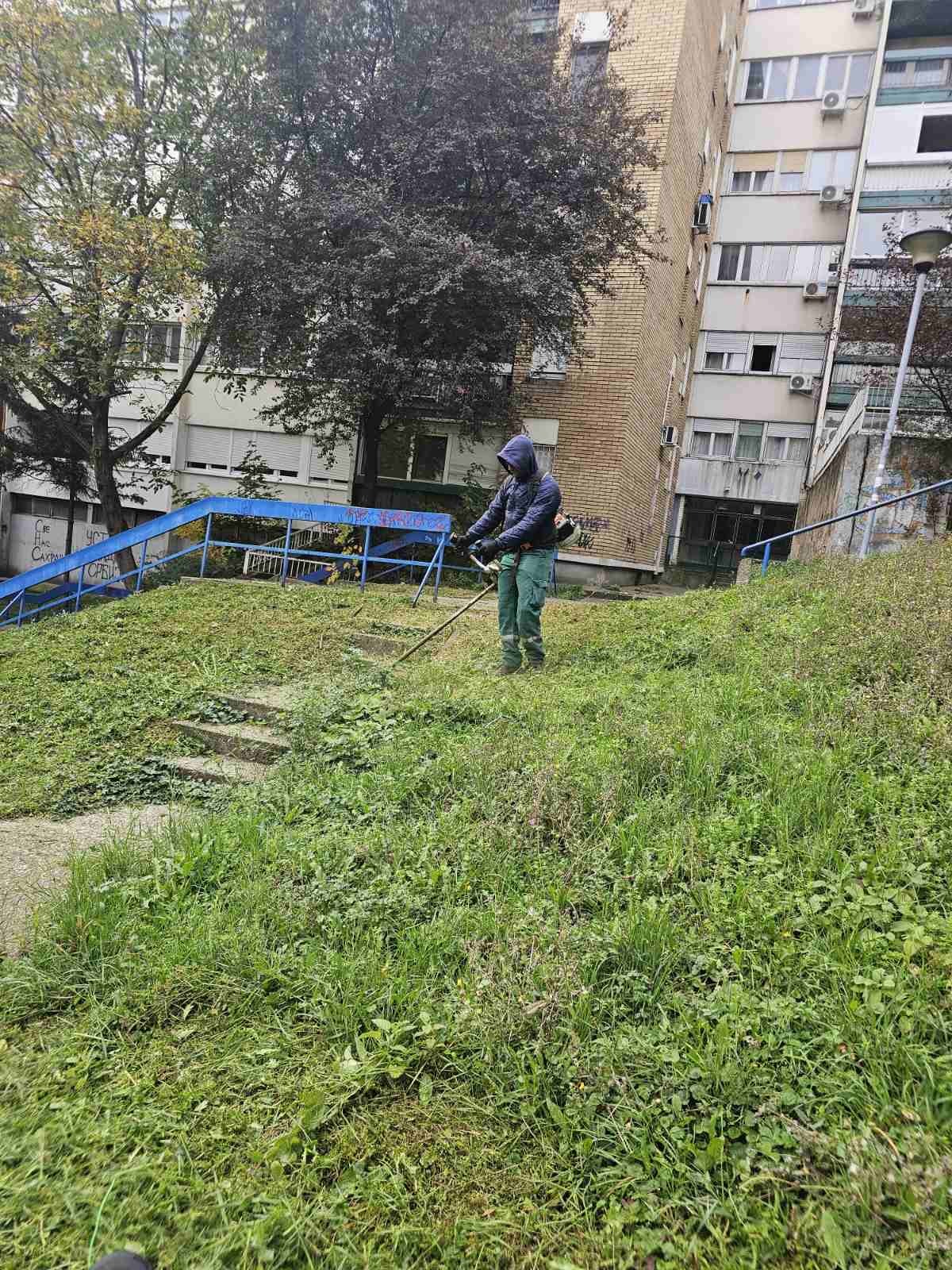 Orezivanje žive ograde 16.oktobar zamena limenih uložaka u đubrijerama Petrarkina,farbanje klupa park Ćirilo i Metodije utovar Samjuela Beketa, Koste Nađa